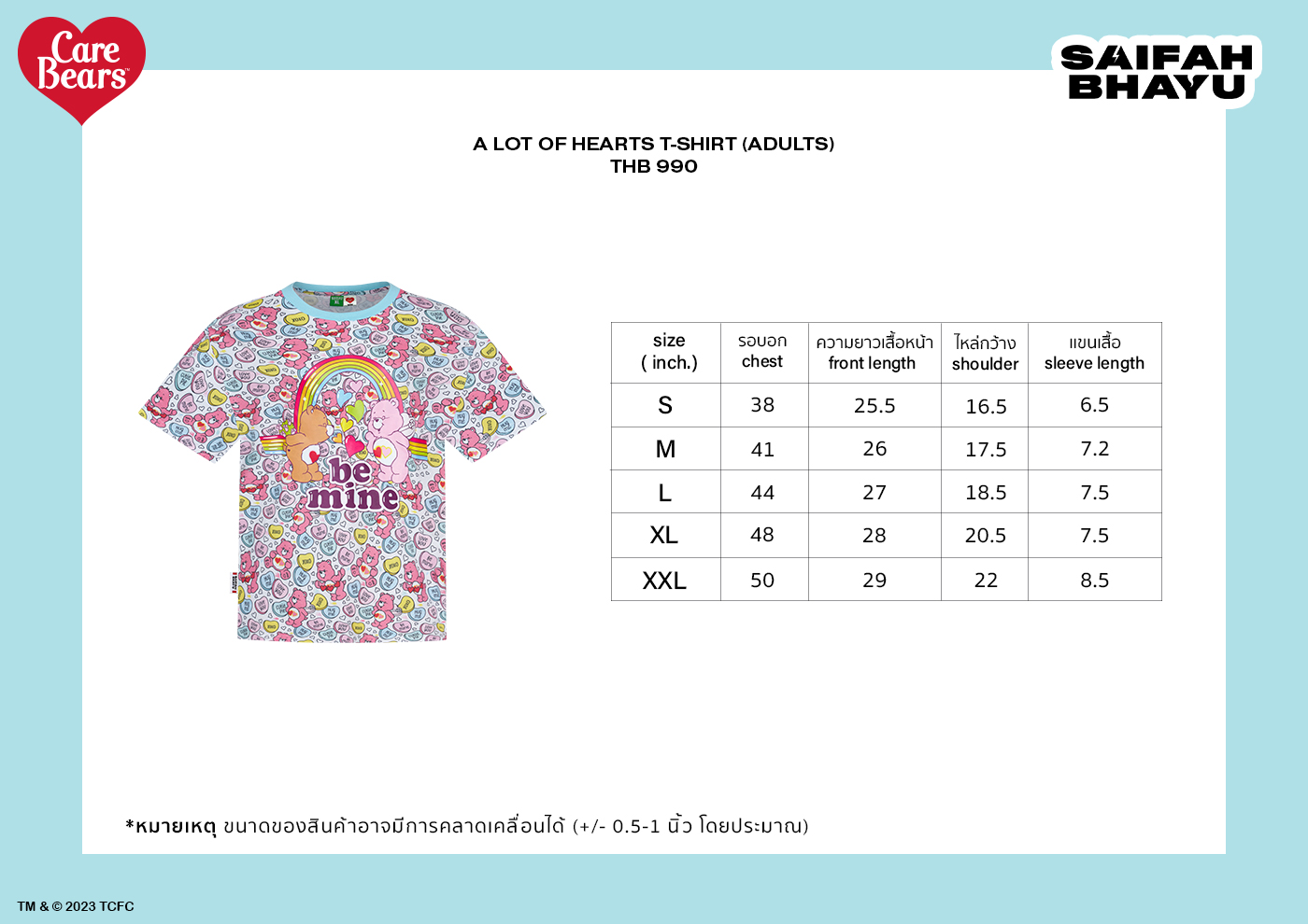 1. ขนาดของสินค้าอาจมีการคลาดเคลื่อนได้ ( +/- 0.5-1 นิ้ว โดยประมาณ)